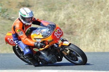 Greg Parish on the D.A.M. Classic Racing Laverda #83 finished 3rd outright in the HMRAV Historic Road Race Titles, Post Classic Unlimited Class at Broadford Raceway.