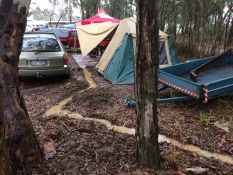 Greg borrowed a spade from the neighbouring campers and dug trenches around their tent to drain away the water.
