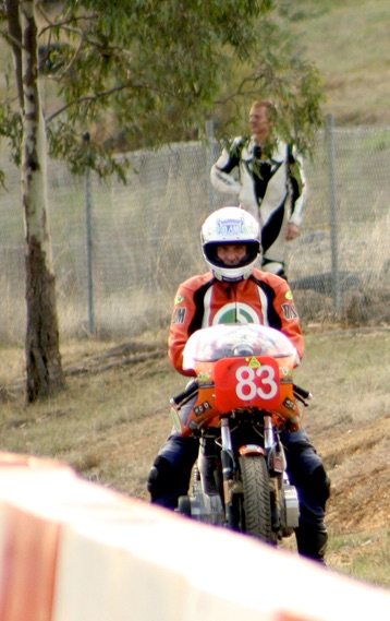 A simple error had cost Greg a good start and he was last by 50 metres going into the turn one. By the time the Last Lap board came out he had worked his way to third position, then another mistake was to cost him dearly.
