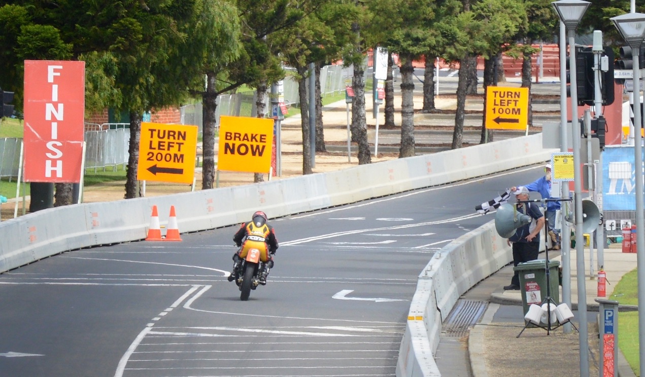 Jimmy Parish who had a background in enduro dirt-bikes, and had little experience with road bikes when he entered the event, struggled to control the wheelie of the front wheel of the Laverda. After some advice in conversations with the experienced Maurice Turner, Jimmy set a new Drag Racing Record for Pre 1973 motorcycles at the 1/4 mile curved beachfront street track on the D.A.M.C.R. 981cc Bol d'Or replica race bike. This record for Laverda stands unbeaten.