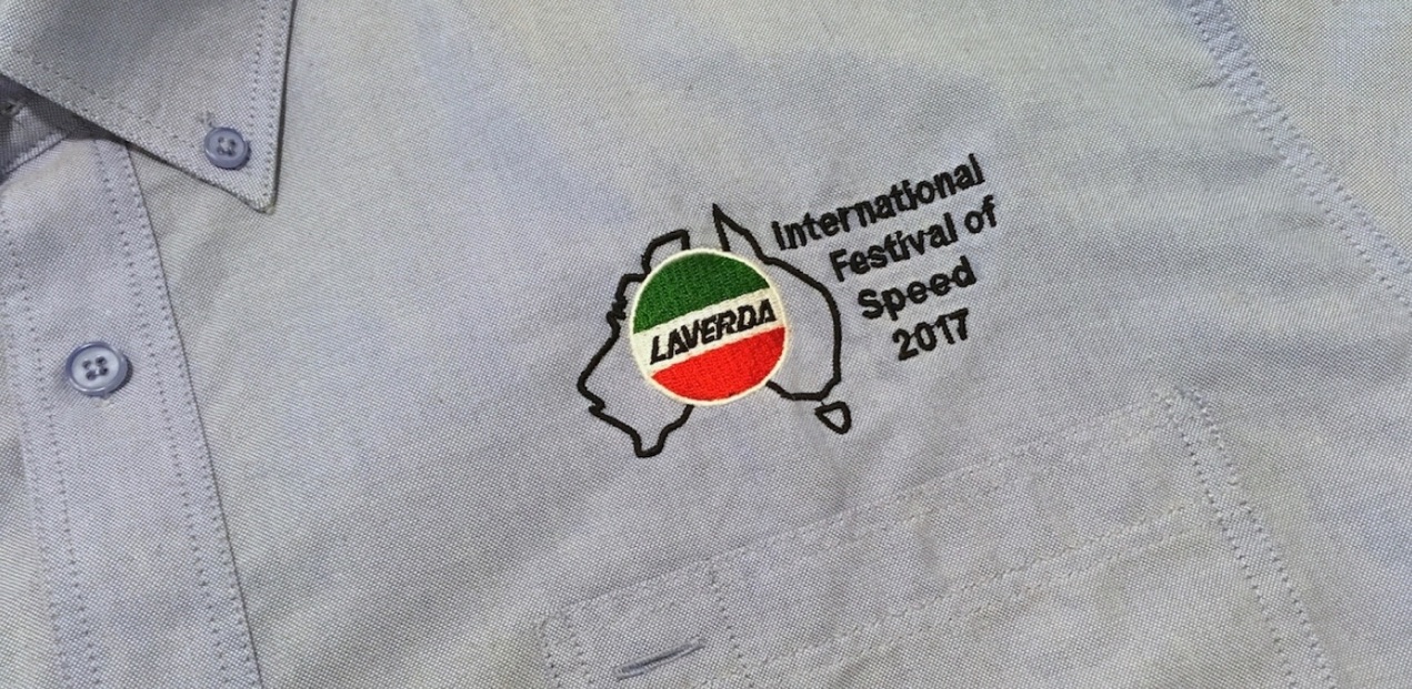 Specially embroidered business shirts displaying a map of Australia surrounding the event title designed by Angus Parish were purchased by D.A.M. Classic Racing to be presented to the Italian Team to commemorate their visit. The Laverda Corse Team wore them every day for the duration of the event.