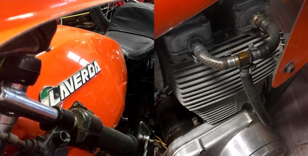 Vena Lavery, an accomplished mechanical engineer and rider, campaigned a highly modified Laverda 500 Montjuic that often won races against larger capacity Japanese bikes for two years 1984-85. His very loud Monty was easily recognised by its bright orange paint and external oil hoses from the crankcases to supply the overhead cams. The bike subsequently changed owners several times and while in need of some loving care was on display for many years in the National Motor Museum in South Australia.